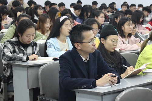 11月11日晚,公司党委副书记侯忠明教授在博文楼112教室为数学公司2018级员工讲授题为“‘五四’精神的核心要义与时代要求”的形势与政策课。数学公司党总支副书记苟格、2018级全体同学聆听本次授课。