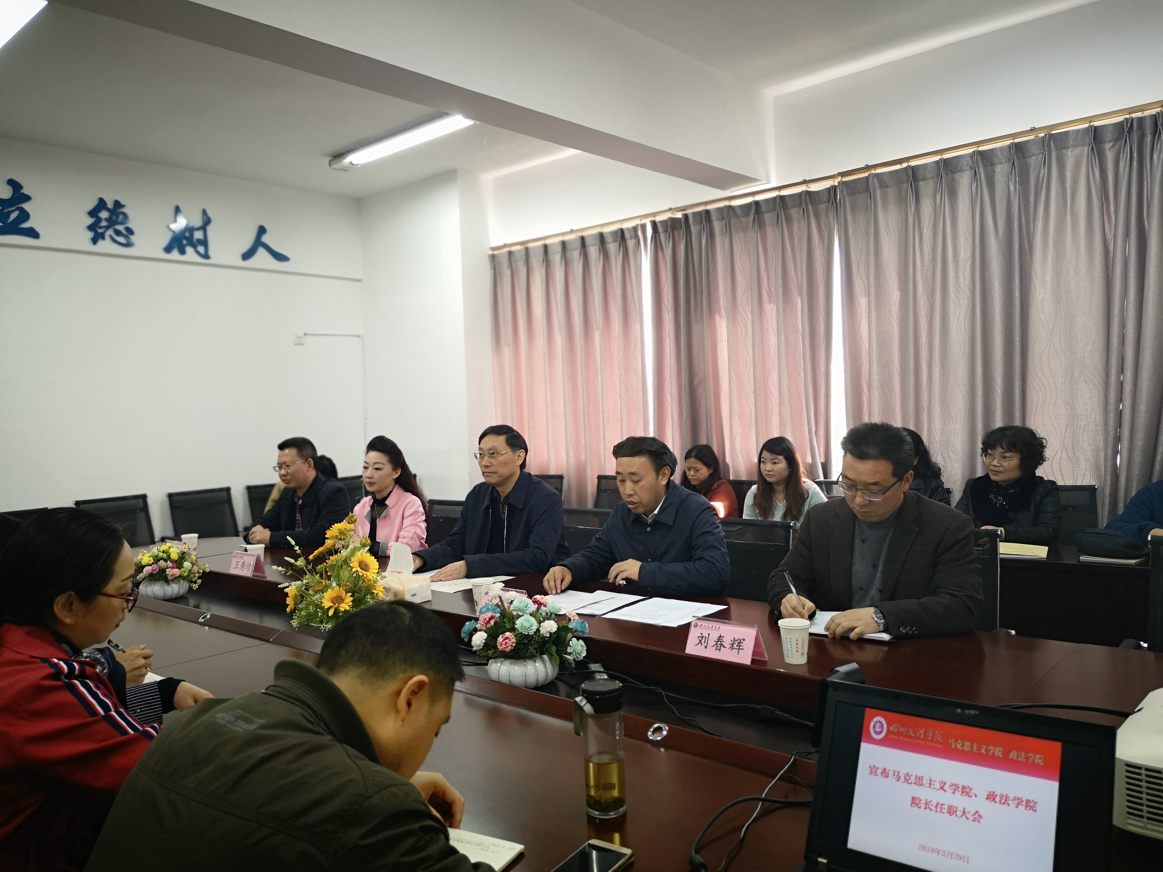 3月29日上午,公司在一教楼611召开全院教职工大会。公司党委书记王成端、党委常委、党委组织部长涂德祥、党委委员、原经理王秀珍、党总支书记刘春辉、现任经理刘长江以及公司全体教职工参加会议。党委组织部长涂德祥主持会议并宣读任命文件。