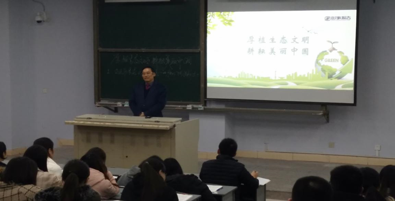 2018年11月19日晚7点,公司党委书记、教育部2013-2017环境科学与工程类专业教学指导委员会委员、国家城市污水处理及资源化工程技术研究中心专家委员会专家王成端教授在莲湖校区一教学楼511教室为教师教育公司2017级3/4/5班的本科生讲授了一堂题为“厚植生态文明,耕耘美丽中国”的形势与政策课。太阳网集团tcy8722、政法公司王秀珍经理、形势与政策教研室主任梁云老师、教师教育公司辅导员文娟老师一同聆听了王书记的授课。