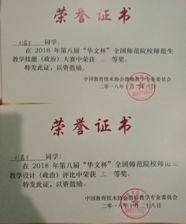 10月26日至28日,由中国教育技术协会微格教学专业委员会主办的2018年第八届“华文杯”全国师范院校师范生教学技能(政治)大赛决赛在南京晓庄公司举行。公司员工刘露宇获得教学技能大赛二等奖,教学设计评比三等奖。