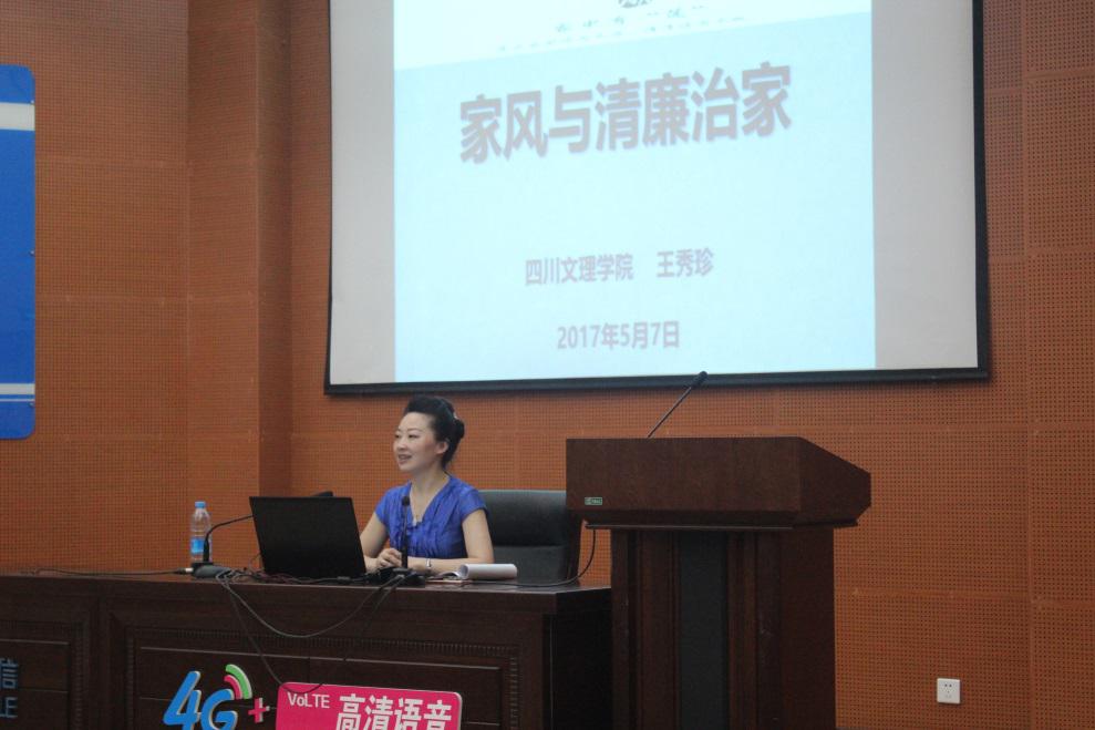 5月17日晚7点,王秀珍经理在莲湖校区学术报告厅B厅作了题为“家风与清廉治家”的学术讲座。公司党总支副书记张善喜老师出席并主持了此次讲座,政法公司2015级、2016级部分班级员工聆听了讲座。