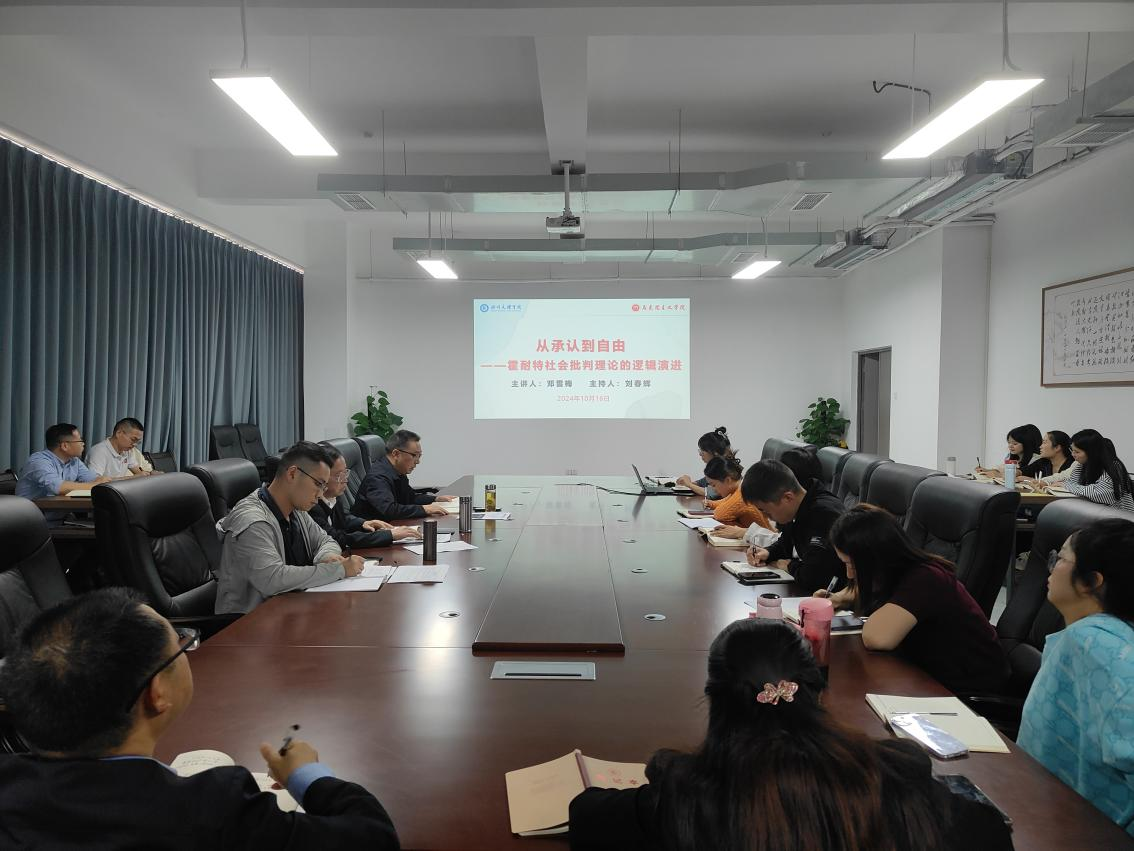 为提升公司教师科研能力,营造良好学术氛围,10月16日,邓雪梅博士为全体教师作《从承认到自由——霍耐特社会批判理论的逻辑演进》的学术讲座,讲座由公司党委书记刘春辉主持。
