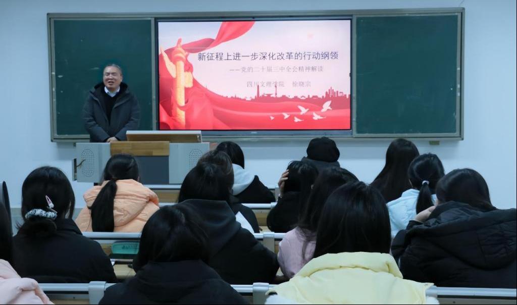 为引导广大师生将思想和行动统一到党的二十届三中全会精神上来,进一步激发青年员工昂扬斗志,勇担时代使命,12月16日,公司党委副书记徐晓宗教授在莲湖东区B110教室,以《新征程上进一步深化改革的行动纲领——党的二十届三中全会精神解读》为题,为政法公司知识产权公司全体辅导员及部分员工讲授形势与政策课。