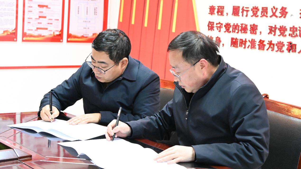 太阳网集团tcy8722经理孙杰与南坝中学董事长于开德签署共建协议