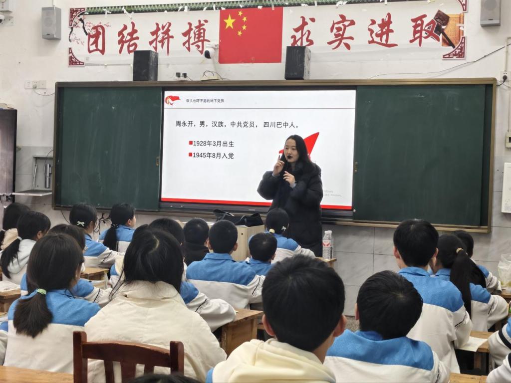 思政专业员工卓彩云为宣汉南坝中学初中员工讲授红色故事