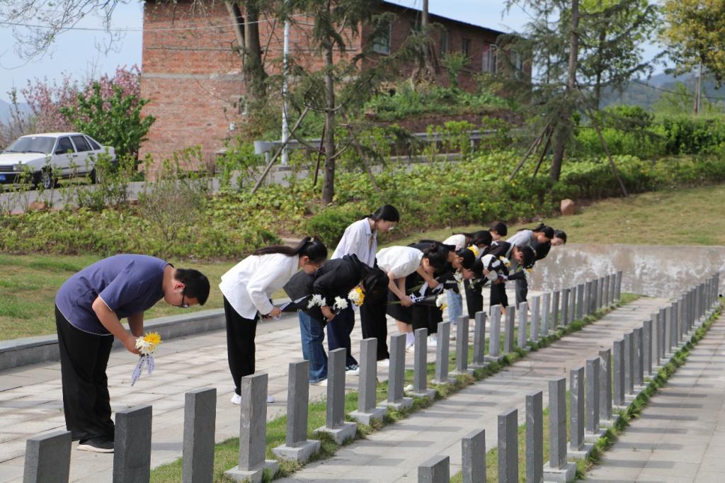 然后,同学们在鲁老师的带领下,开始了向烈士献花。不忘来时路,走好脚下路。献花过后,本次活动也来到尾声。清明祭扫英烈,是一堂生动的党史教育课。站在烈士墓前,重温英烈事迹,在思想深处接受一次深刻的党性洗礼。当代老员工应学习革命英烈为党和国家奉献的精神,继承革命英烈的光荣传统,沿着革命先辈开创的道路砥砺前行,不断推进新时代的伟大斗争与伟大革命,为建设中国特色社会主义贡献青春力量。