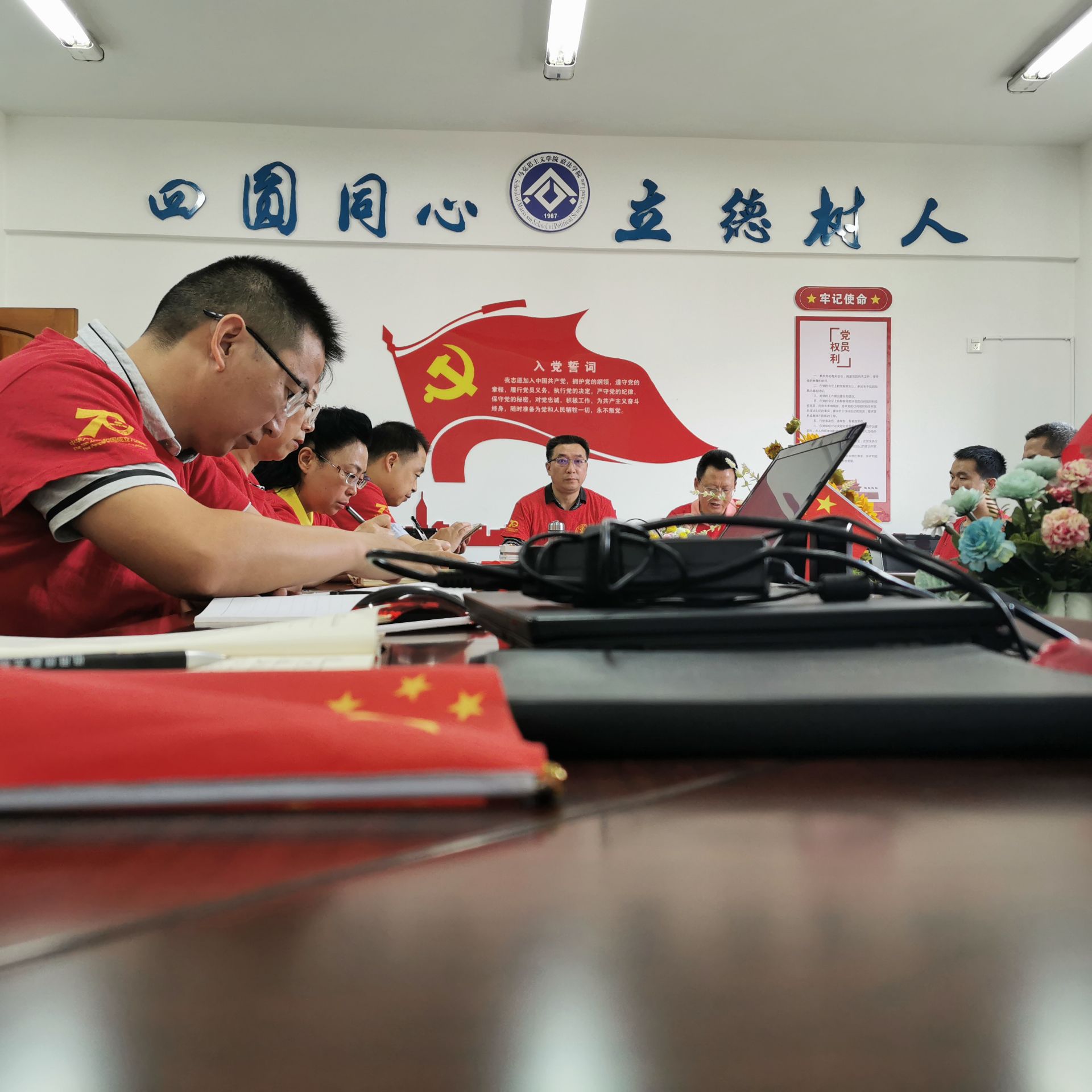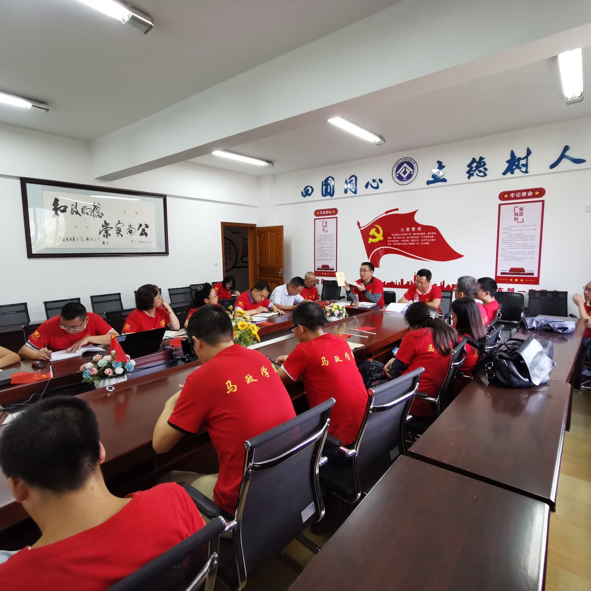 9月30日下午,在举国欢庆中华人民共和国成立70周年之际,结合公司“不忘初心、牢记使命”主题教育,太阳网集团tcy8722、政法公司组织全体教师和部分员工开展“我向祖国表白”主题党日活动。