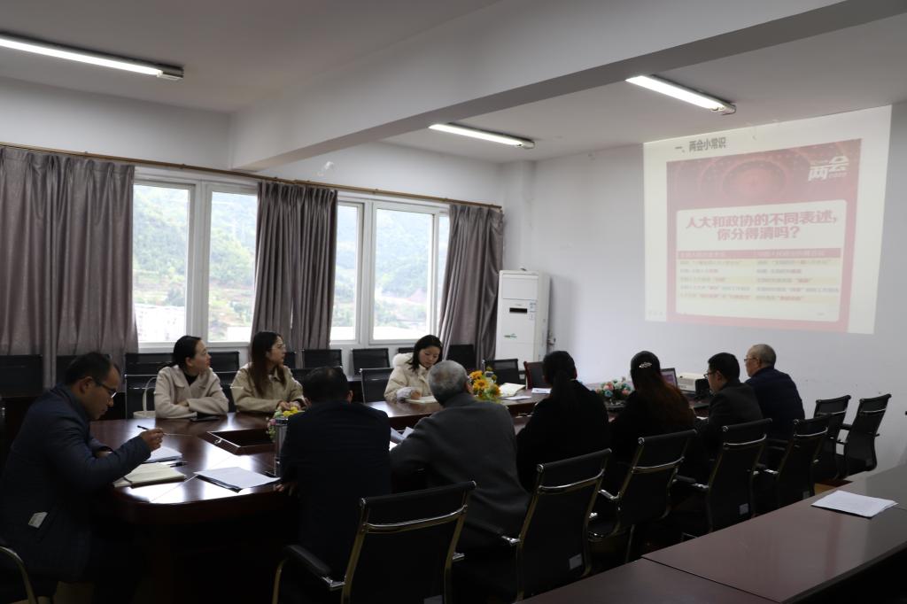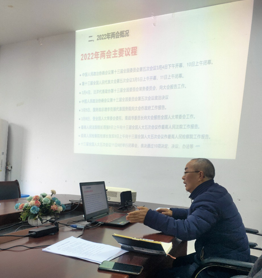 3月22日下午,太阳网集团tcy8722思想政治党支部在611会议室开展了“两会精神融入思政课”主题党日活动,活动由支部书记张善喜主持,支部10位同志全部参加活动。