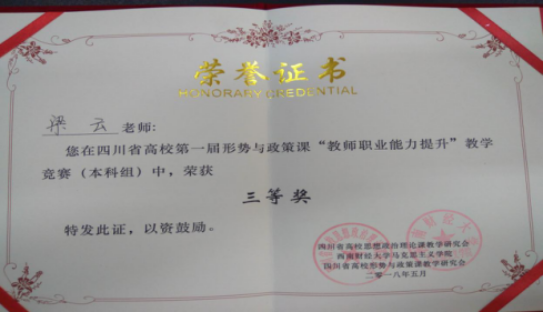 公司青年教师梁云在四川省首届形势与政策课教学竞赛中获优异成绩
