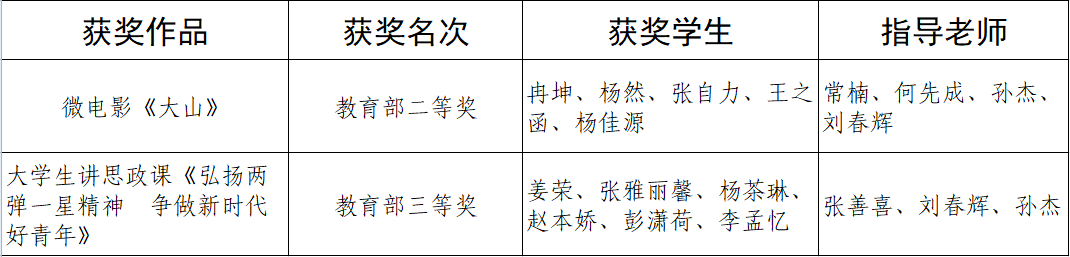 公司原创微电影《大山》、老员工讲思政课《弘扬两弹一星精神 争做新时代好青年》分别获教育部二等奖和三等奖