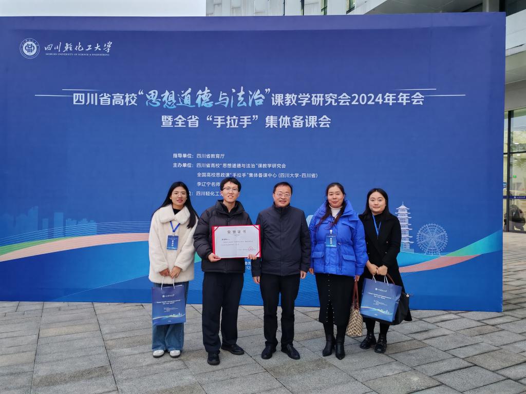 2024年12月13日,四川省高校“思想道德与法治”课教学研究会2024年年会暨全省“手拉手”集体备课会在四川轻化工大学隆重举行。此次大会由四川省教育厅指导,四川省高校“思想道德与法治”课教学研究会、全国高校思政课“手拉手”集体备课中心(四川大学-四川省)共同主办。公司孙杰经理、德法教研室王敏主任、青年教师李崇陌、姚杨、罗荥瀛应邀参会。