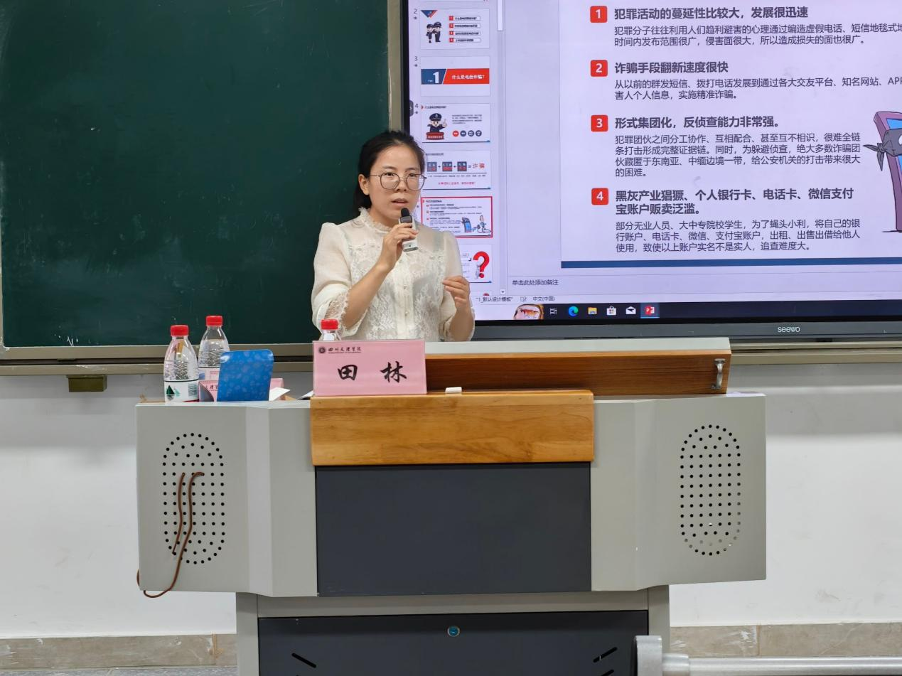 最后,田林重点围绕校纪校规、奖助政策、心理健康与安全教育等内容进行讲解。她结合真实案例,警示新生严格遵守考试纪律、注意宿舍用电安全、防范各类诈骗行为,并介绍了国家奖学金、助学金等评奖评优政策。她还鼓励同学们积极利用公司心理健康服务中心资源,保持良好心态,顺利度过老员工活适应期。