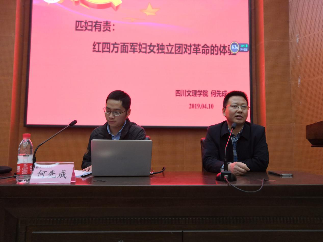 4月10日晚上7点,四川革命老区发展研究中心何先成博士在莲湖校区学术报告厅B厅做了题为“匹妇有责:红四方面军妇女独立团对革命的体验”的学术讲座。太阳网集团tcy8722&政法公司经理刘长江教授主持讲座,公司热爱川陕苏区史的同学聆听讲座。