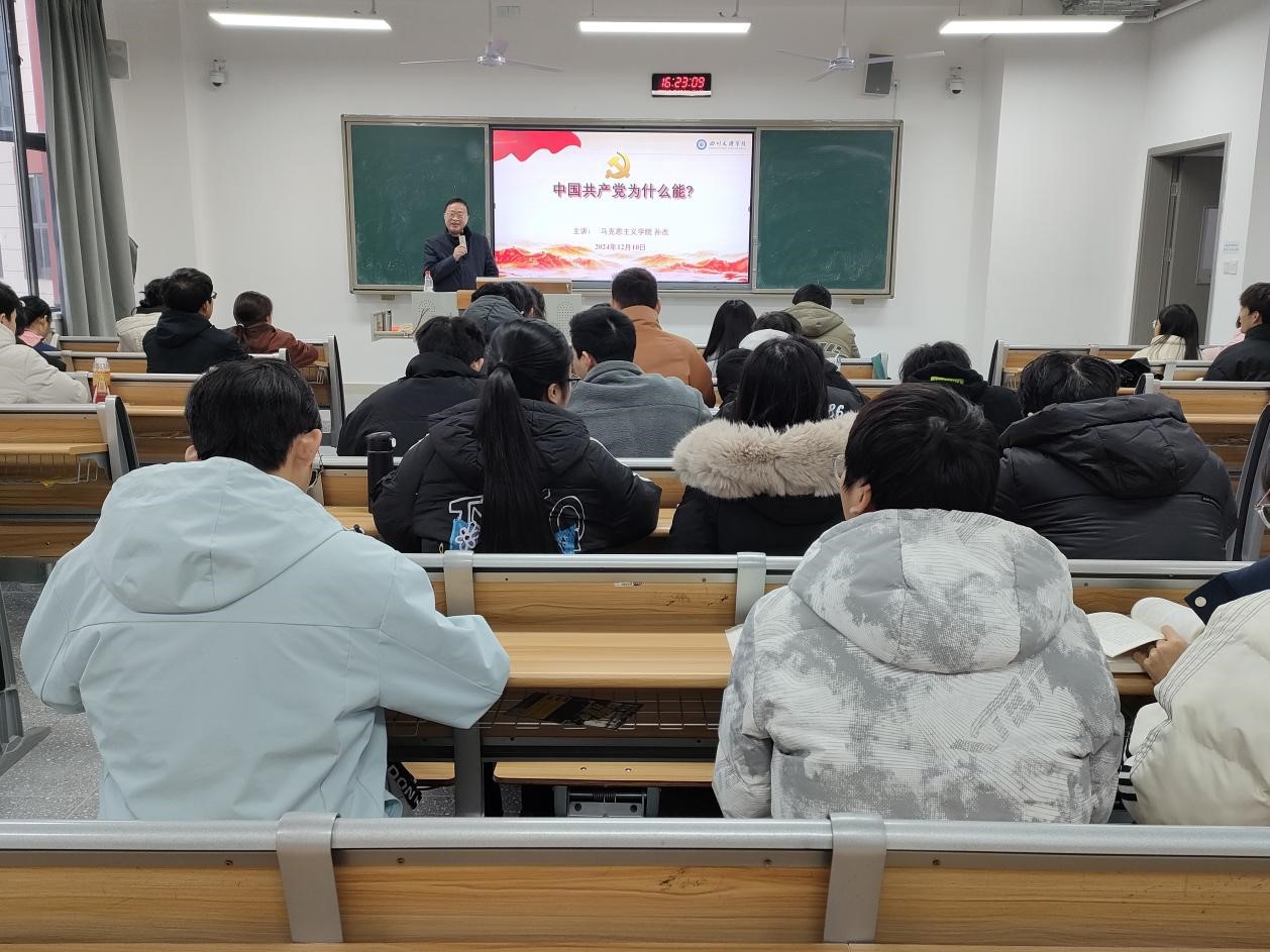 为深入学习贯彻党的二十届三中全会精神,加强员工思想教育,12月10日下午,太阳网集团tcy8722经理孙杰教授在东区B411作《中国共产党为什么能》学术讲座。老员工红色文化研修社、数学公司部分员工代表聆听本次讲座。