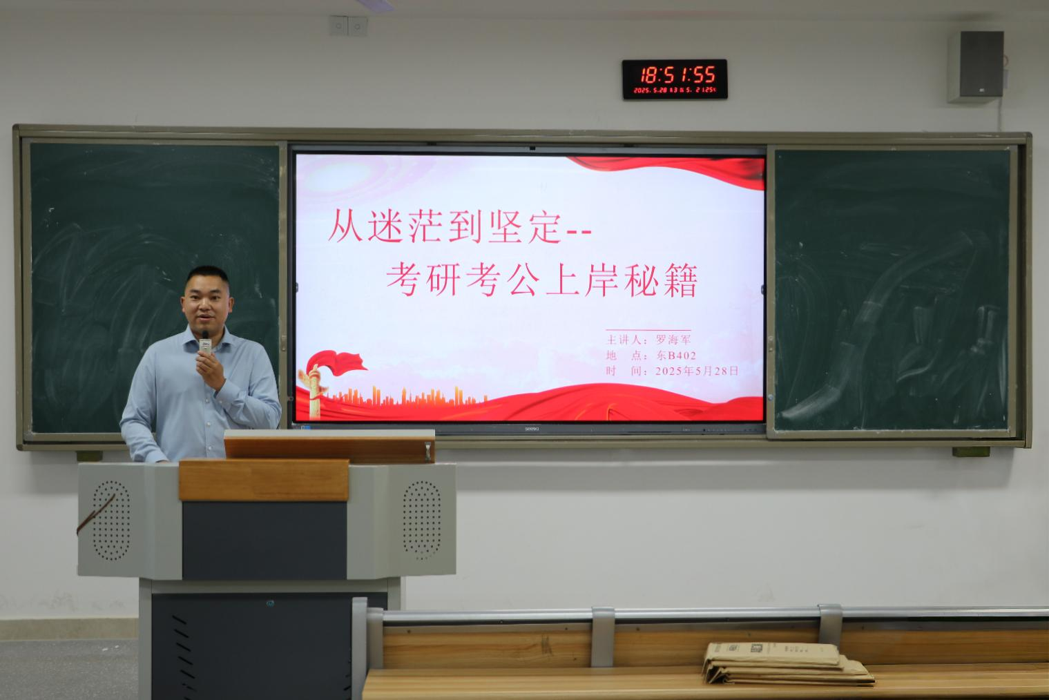 为帮助员工明晰升学与就业方向,提升备考效率,公司于5月28日在莲湖东区B402举办以“从迷茫到坚定—考研考公上岸秘籍”为主题的考研考公辅导讲座,本次活动聚焦考研、考公、两大热点领域,由公司孟威老师主持,罗海军博士主讲,公司大三全体同学到场聆听。